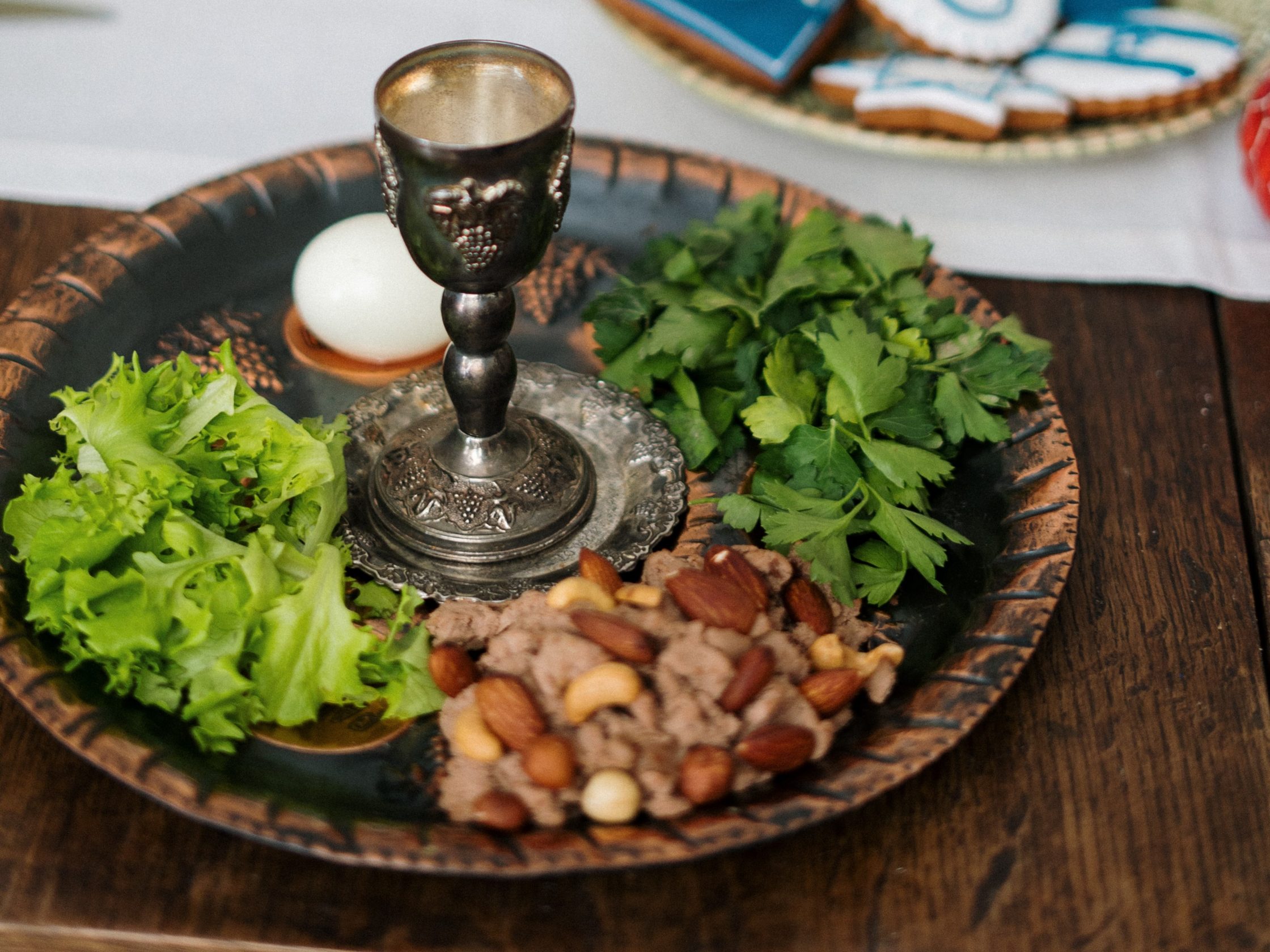 Hieronder vind je de volgorde van de maaltijd én de onderdelen van de sederschotel en de vier bekers wijn.